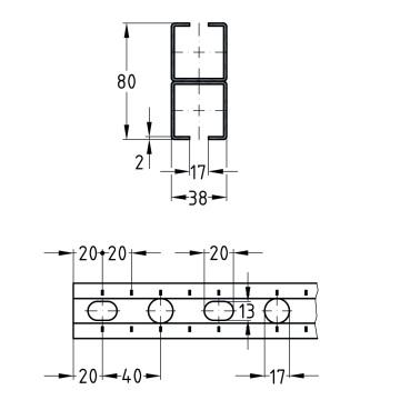 Rail d'installation MPC 38/80 Profil-H, Longueur 6.640 mm, galv. Sendzimir