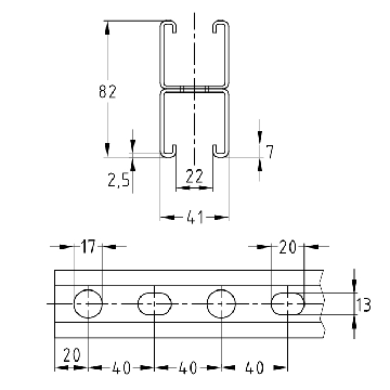 Rail d'installation MPR 41/82/2.5, profil H, longueur 6.000 mm, galvanisé