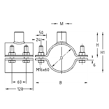 Collier pour point fixe FPA, G1", 5" (139,7 mm), électrozingué
