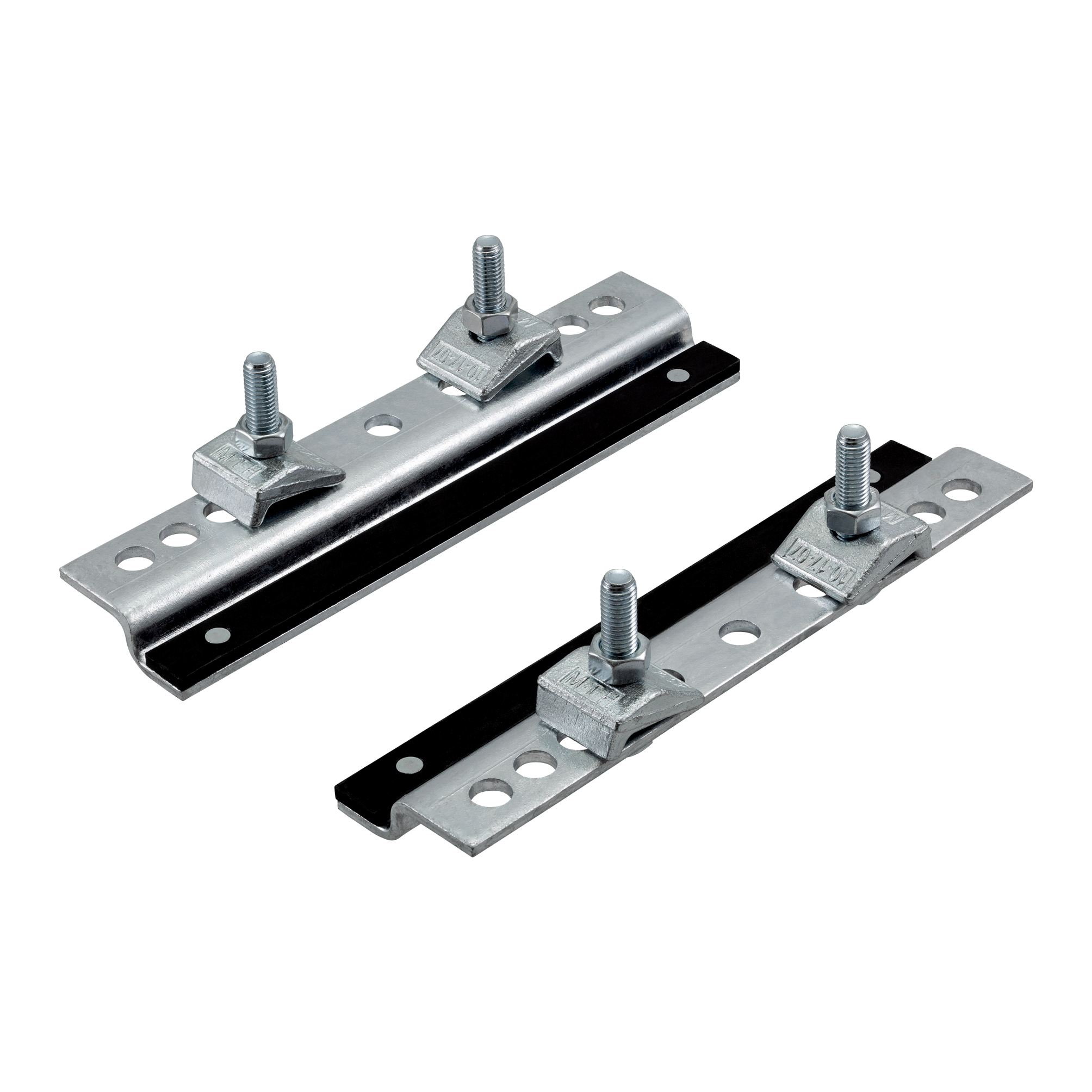 • Le kit contient 2 clames de serrage ainsi que les pièces de montage correspondantes et les angles de serrage pour la fixation des patins MÜPRO sur la structure