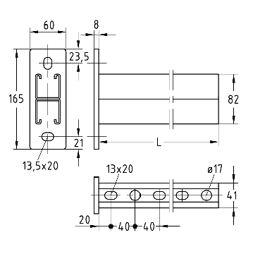 Console rail MPR 41/82/2,5, Longueur: 1.040 mm, galv. à chaud