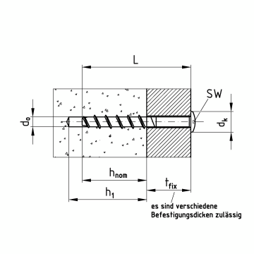 Épaisseur de la pièce à fixer profondeur d'ancrage standard