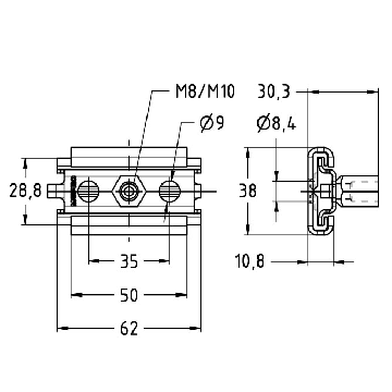 Support coulissant 1 kN, Taraudage M8/M10, verzinkt