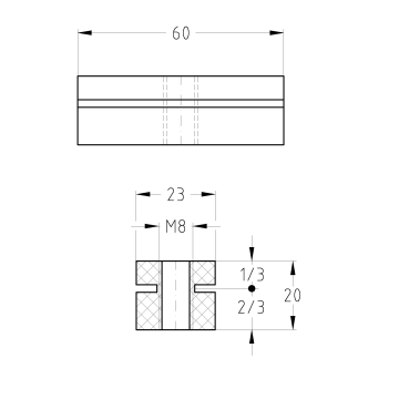 Glissière plastique, M8, pour Profil 27/18-28/30