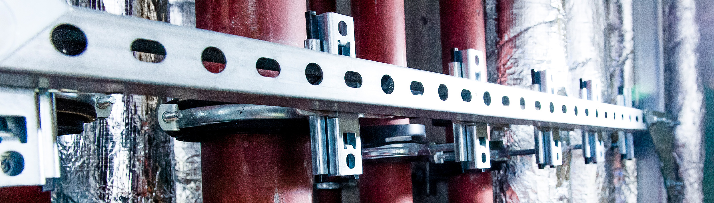 Le transport des fluides génère du bruit, plus important dans les colonnes montantes en raison des vitesses de fluide plus élevées. Les zones d’impact représentent un défi supplémentaire pour l’isolation acoustique. Il est nécessaire d’utiliser des éléments d’absorption ou de désolidarisation acoustique afin d’éviter que le bruit de structure ne se transmette à la construction via les fixations.