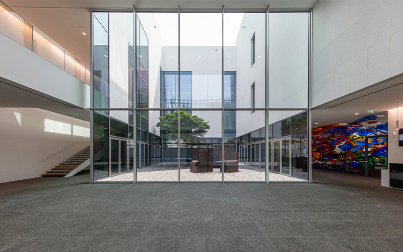 La conception et la construction de bâtiments publics imposent des exigences élevées en matière de sécurité. Les issues de secours et les voies d'évacuation sont essentielles pour permettre une évacuation rapide en cas d'urgence. Afin de protéger les œuvres d'art, des solutions et des mesures de sécurité de haute qualité ont dû être mises en œuvre lors de la construction. Outre la protection contre les incendies, l'isolation acoustique est également importante dans les musées.