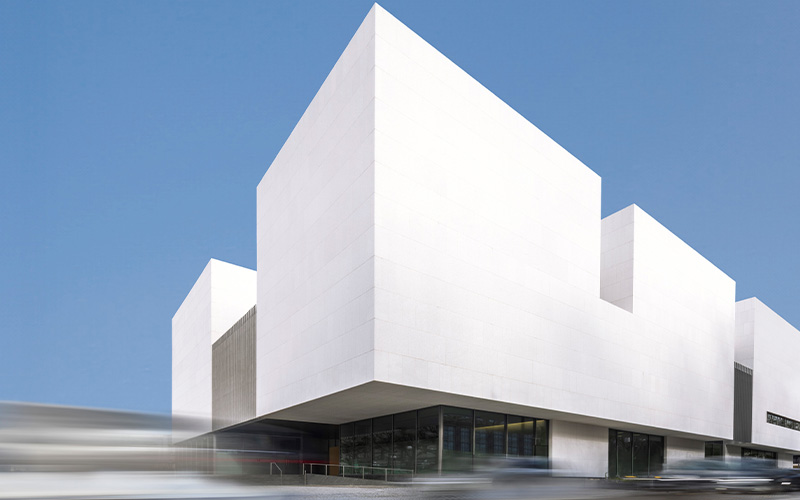 En raison de son revêtement en granit blanc et de sa forme cubique, il a été surnommé « le cube de sucre ». Sur 2 500 mètres carrés d'espace d'exposition, l'aménagement intérieur séduit par ses matériaux haut de gamme et ses caractéristiques architecturales particulières, telles qu'une cour intérieure vitrée.