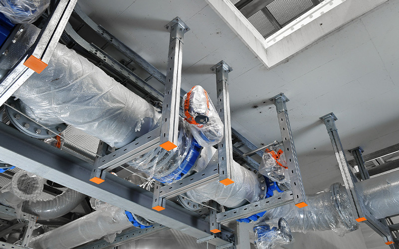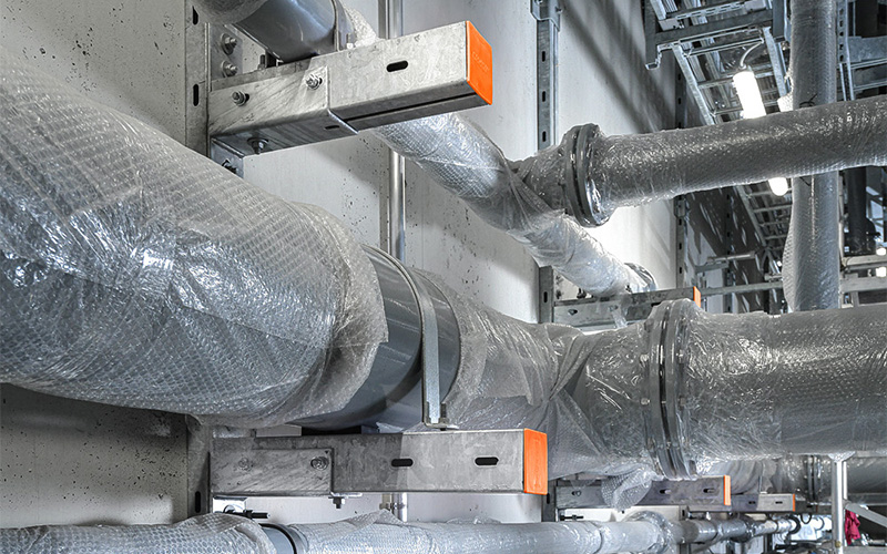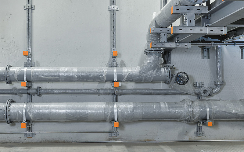 L'usine hydraulique de Linden est équipée de systèmes innovants pour le traitement des eaux souterraines. Les nouvelles sections de conduites ont été adaptées au débit prévu et requis. Afin d'absorber de manière optimale les charges élevées et la densité d'occupation accrue, des constructions pour charges lourdes issues de la gamme MPT de MÜPRO ont été utilisées. Le système de fixation MPT coordonné est adapté à la fixation sûre de tuyaux lourds dans la construction industrielle et d'installations.